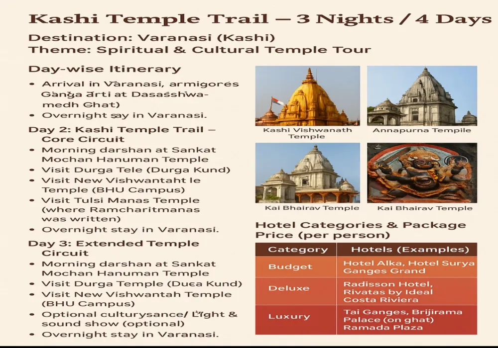 ✨ Add-ons available: Rudrabhishek Puja at Kashi Vishwanath, Cultural dance evening, Dev Deepawali / Kartik Purnima special arrangements.